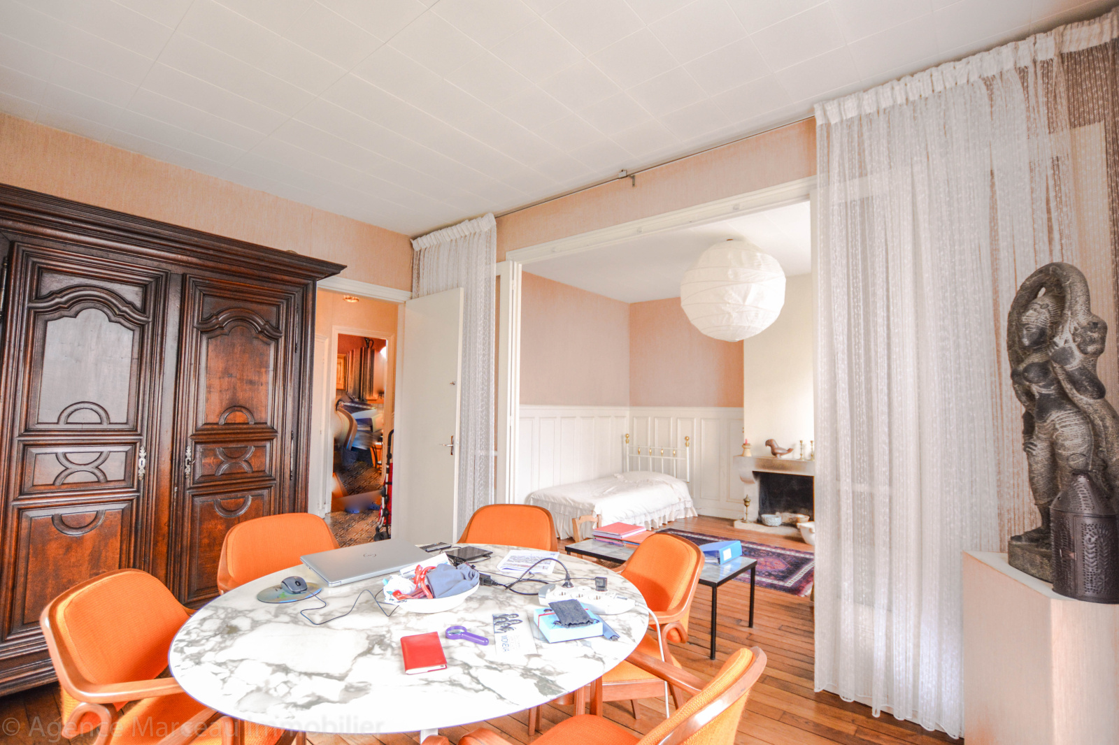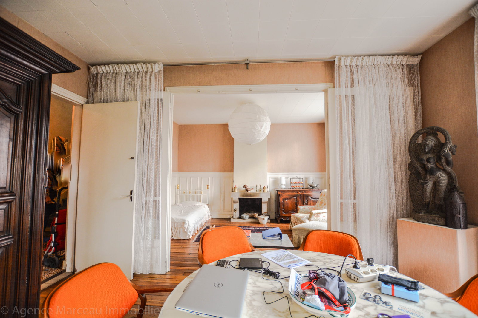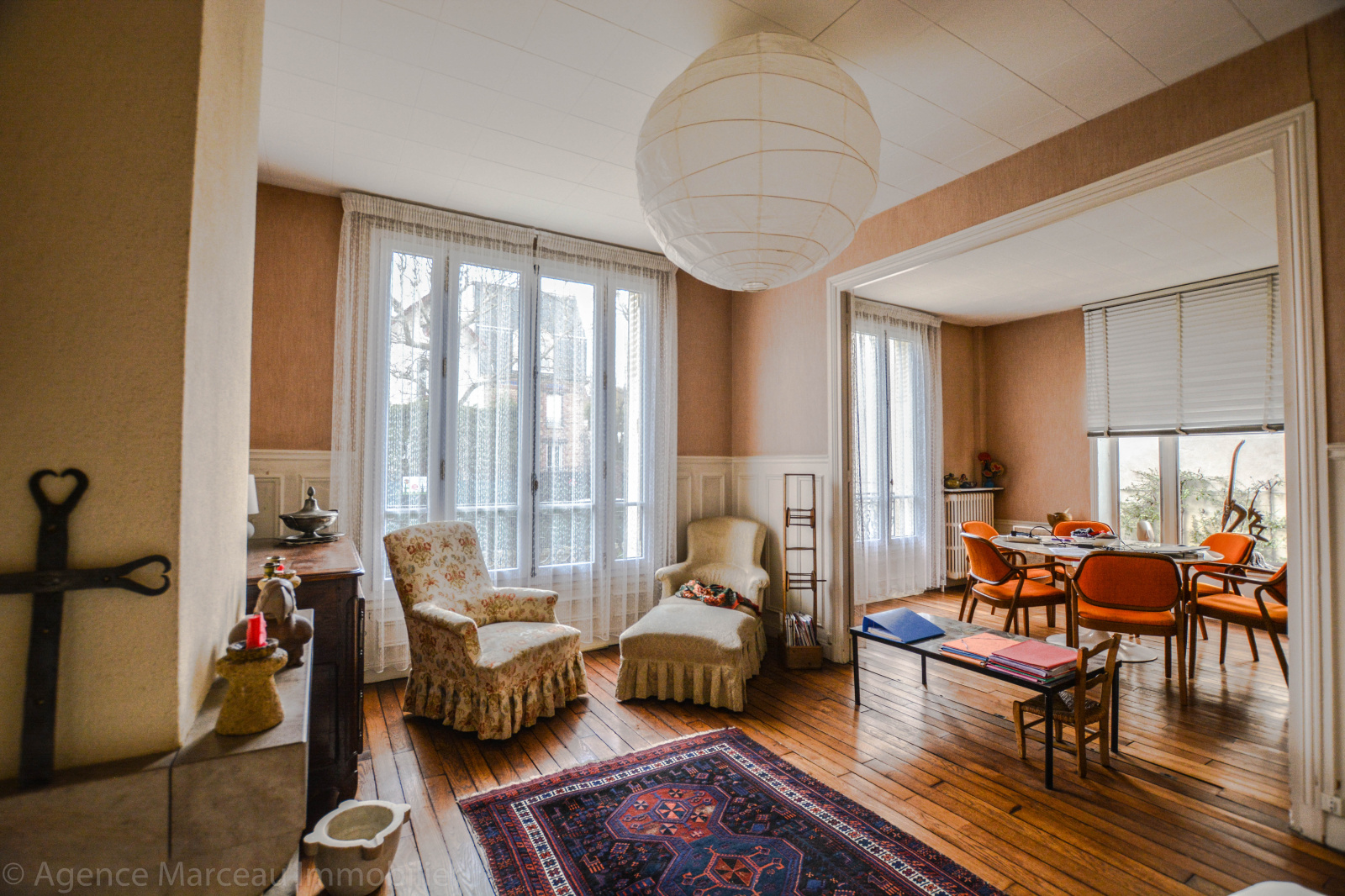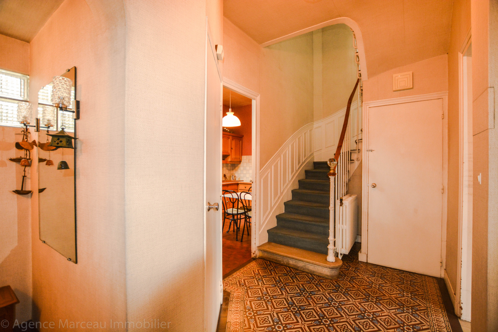 Exclusivité Agence Marceau - AMEPI. Courbevoie - République. Sur une parcelle de 195m² et située dans un quartier recherché, jolie maison ancienne R+2 à rafraîchir des années 1900 d'une surface habitable de 126m² environ, en briques et meulières, mitoyenne d'un côté, offrant au rez-de-chaussée surélevé: une entrée avec vestiaire, un vaste double séjour ensoleillé avec cheminée, donnant sur le jardin exposé Sud, une cuisine séparée équipée, un wc séparés d'invité. Au 1er étage: un bureau (ou chambre d'enfant), deux chambres spacieuses dont l'une avec sa salle de douches/wc attenante, cheminée et penderie. Au 2ème étage, une chambre spacieuse, salle bains, deux chambres en enfilade avec point d'eau, placards et rangements. Sous-sol total avec cave à vin, atelier, buanderie et chaufferie (fioul). Jardin de 100m² environ. Préau (carport pour le stationnement de 2 voitures). Calme. Maison en pleine propriété.Taxe foncière: 404 euros. Proche transports et écoles. Bien rare dans le secteur.