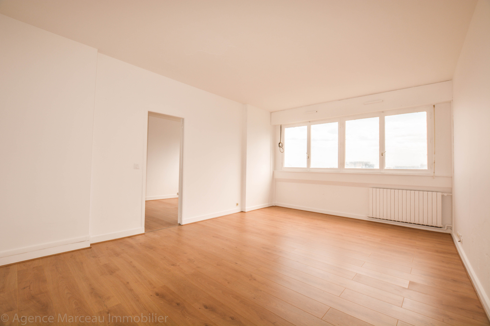 Exclusivité Agence Marceau - AMEPI. Courbevoie Charras. A proximité des transports et au 11ème étage d'un immeuble récent, grand 2 pièces de 68,65m² (modulable en 3 pièces) à rénover, offrant entrée vaste séjour ensoleillé avec vue dégagée sur Paris, grand espace de cuisine à créer (poss US), chambre spacieuse, salle de bains/buanderie, dégagement avec penderie, wc séparés. Gardien. Un cellier complète le bien. Beaux volumes. Potentiel de réagencement. Possibilité d'acquérir un parking en supplément (16KE EN SUS). Taxe foncière: 830 euros. Charges annuelles: 3400 euros (chauffage collectif, gardien et eau chaude inclus). Copropriété de 250 lots principaux. Proche écoles et commerces.