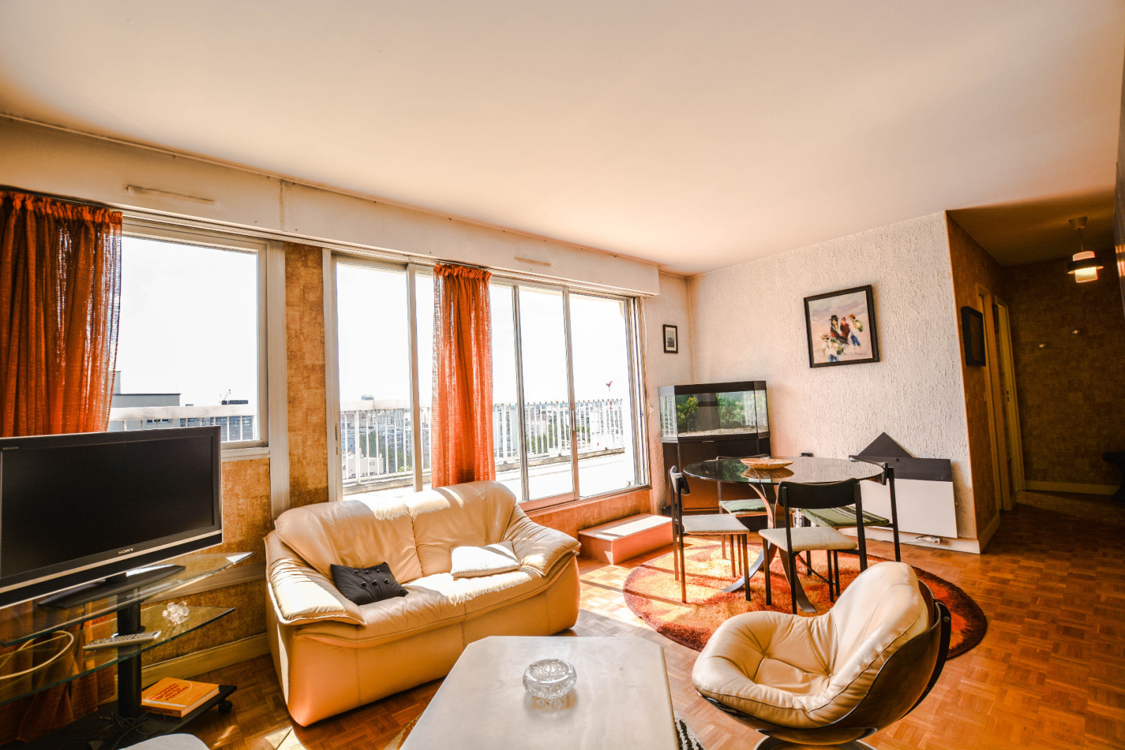Exclusivité Agence Marceau. Courbevoie avenue Marceau. Coeur de ville. A proximité de la gare et au dernier étage d'un immeuble semi-récent avec gardien, grand 2 pièces de 57 m² environ, offrant vaste séjour ensoleillé, vue dégagée, sans vis à vis avec une terrase de 30m² environ, cuisine séparée aménagée, une chambre, salle de bains, wc séparés, penderie. Une cave en sous-sol complète le bien. Proche toute commodité Rare! Copropriété de 101 lots principaux. Charges annuelles: 2525 euros (chauffage collectif, gardien et eau inclus)
