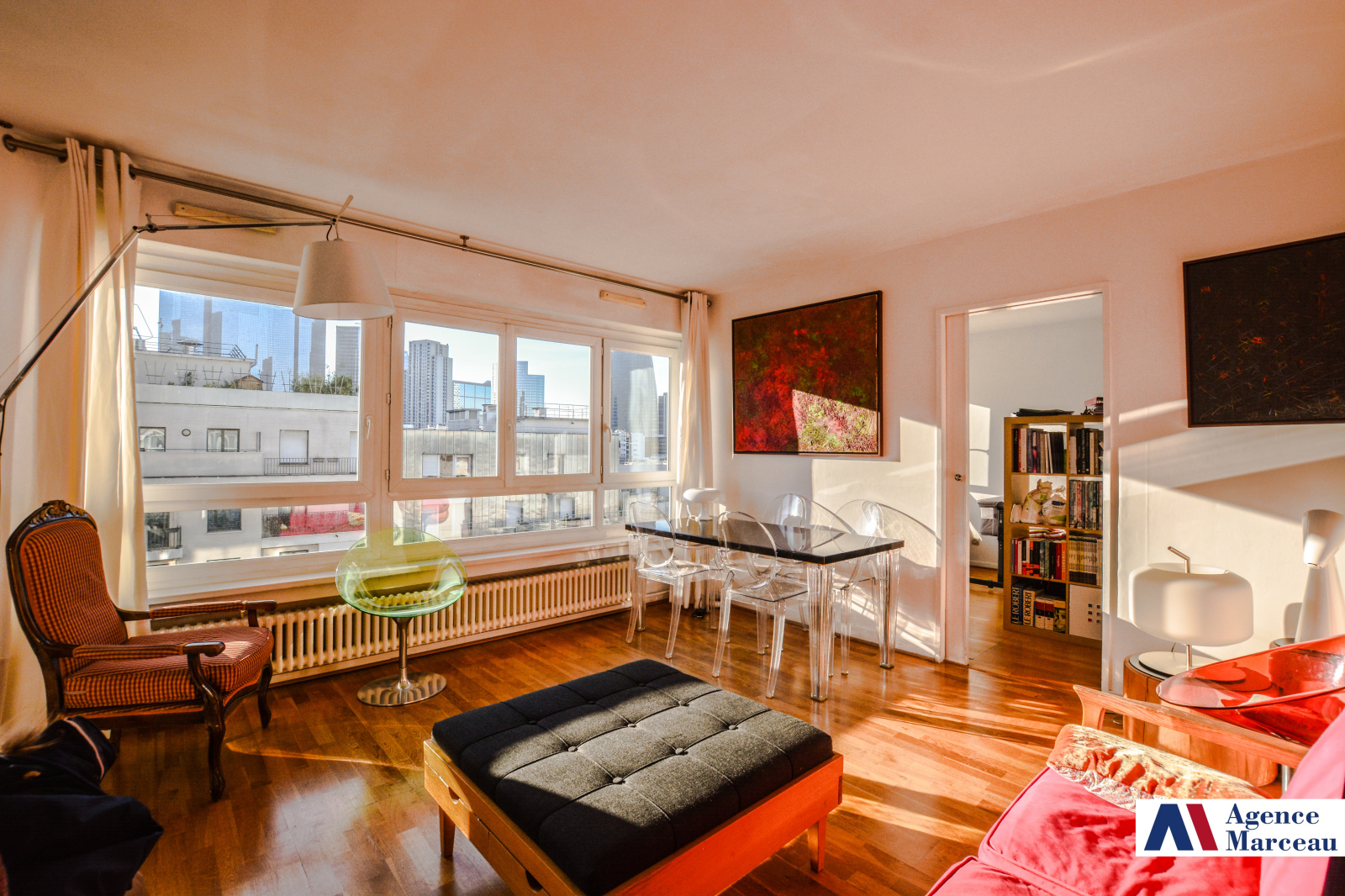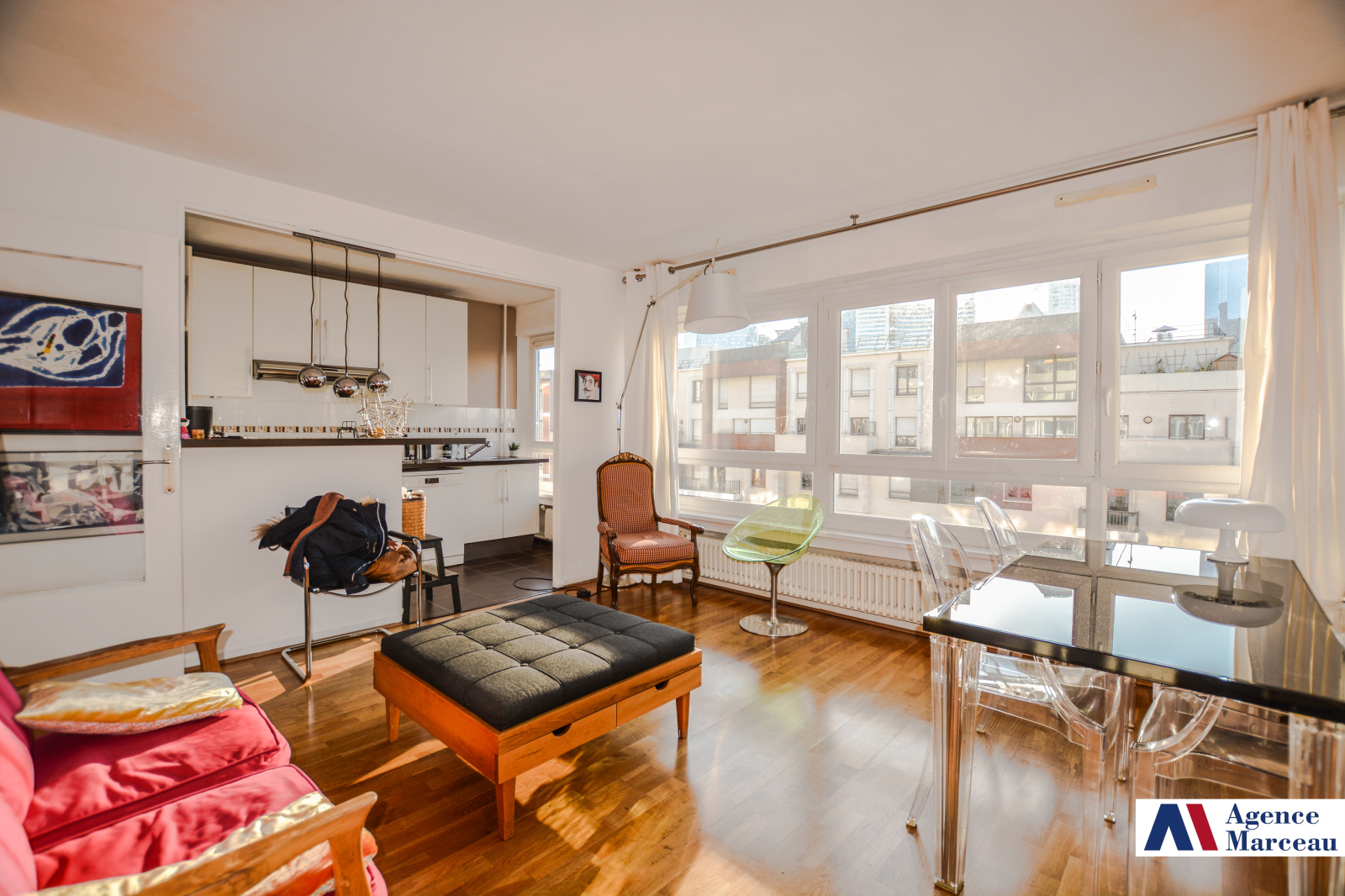 Courbevoie - Charras. A 2 pas des commerces et au 7ème étage d'un immeuble semi-récent avec gardien, joli et grand 2 pièces de 48,8m² en bon état général, offrant entrée, wc séparés avec lave-mains, vaste séjour ensoleillé, vue dégagée, grande cuisine US toute équipée, chambre spacieuse, salle de douches, dressing aménagé. En sous-sol, une cave complète le bien. Possibilité d'acquérir en option un parking en sous-sol ( 15KE EN SUS). Proche toutes commodités. Prêt à habiter! Charges annuelles: 3312 euros (chauffage collectif gaz, eau chaude et gardien inclus). Taxe foncière: 709 euros. Copropriété de 212 lots principaux.