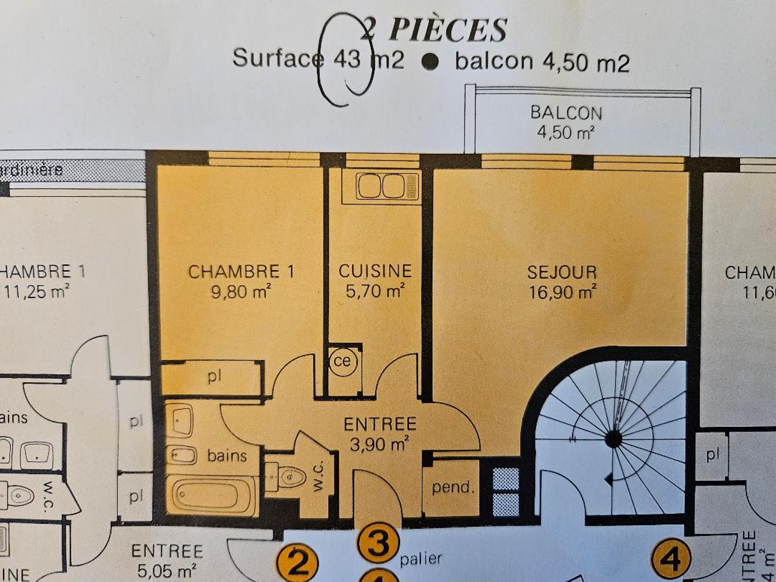 Courbevoie - Gare de Courbevoie. A proximité des transports (métro - Gare - T2- Bus) et au 3ème étage d'un immeuble semi-récent avec gardien, joli 2 pièces de 42,60 m² environ offrant entrée avec placard, vaste séjour lumineux avec balcon, cuisine séparée équipée, chambre spacieuse avec penderie, salle de bains, wc séparés avec lave-mains. Possibilité d'acquérir en option un parking au sous-sol (15KE EN SUS). Proche toute commodité. Très calme. Prêt à habiter! Charges annuelles: 1901 euros (chauffage collectif au sol, eau froide et gardien inclus). Ballon d'eau chaude d'eau. Copropriété de 75 lots principaux.Travaux d'étanchéité de toit terrasse effecués.Pas de procédure en cours citée à l'article L. 721-1 du code de la construction et de l'habitation.
