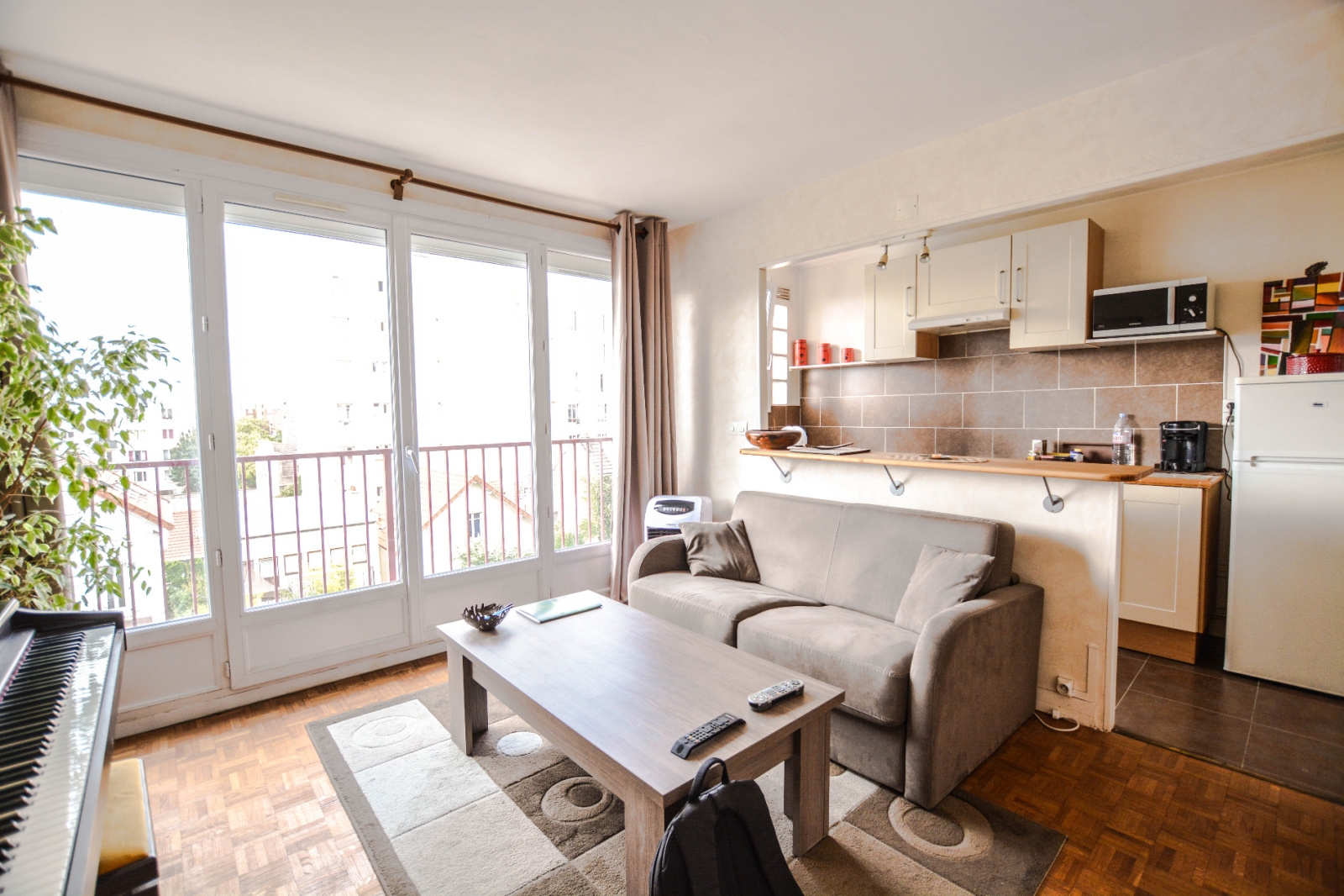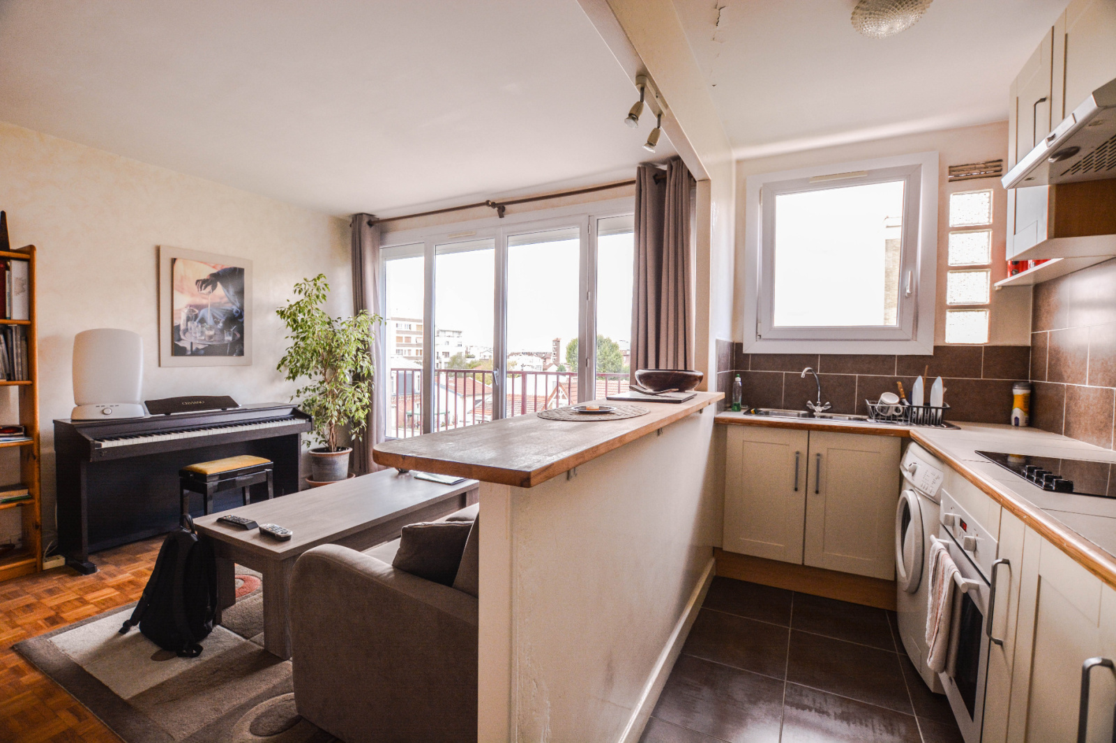 Gare de Courbevoie. A proximité de la gare et au 4ème étage d'un immeuble semi-récent, joli de 2 pièces en bon état général de 43m², offrant une entrée avec placard, un séjour lumineux avec balconnet, vue dégagée, cuisine US équipée avec office, une chambre avec placard, salle de bains avec placard, wc séparés. En sous-sol une cave et un emplacement de parking complètent le bien.Calme. A saisir! Copropriété de 21 lots principaux. Charges annuelles : 2828 euros (chauffage collectif inclus). Prix net vendeur du bien: 275 000 euros.