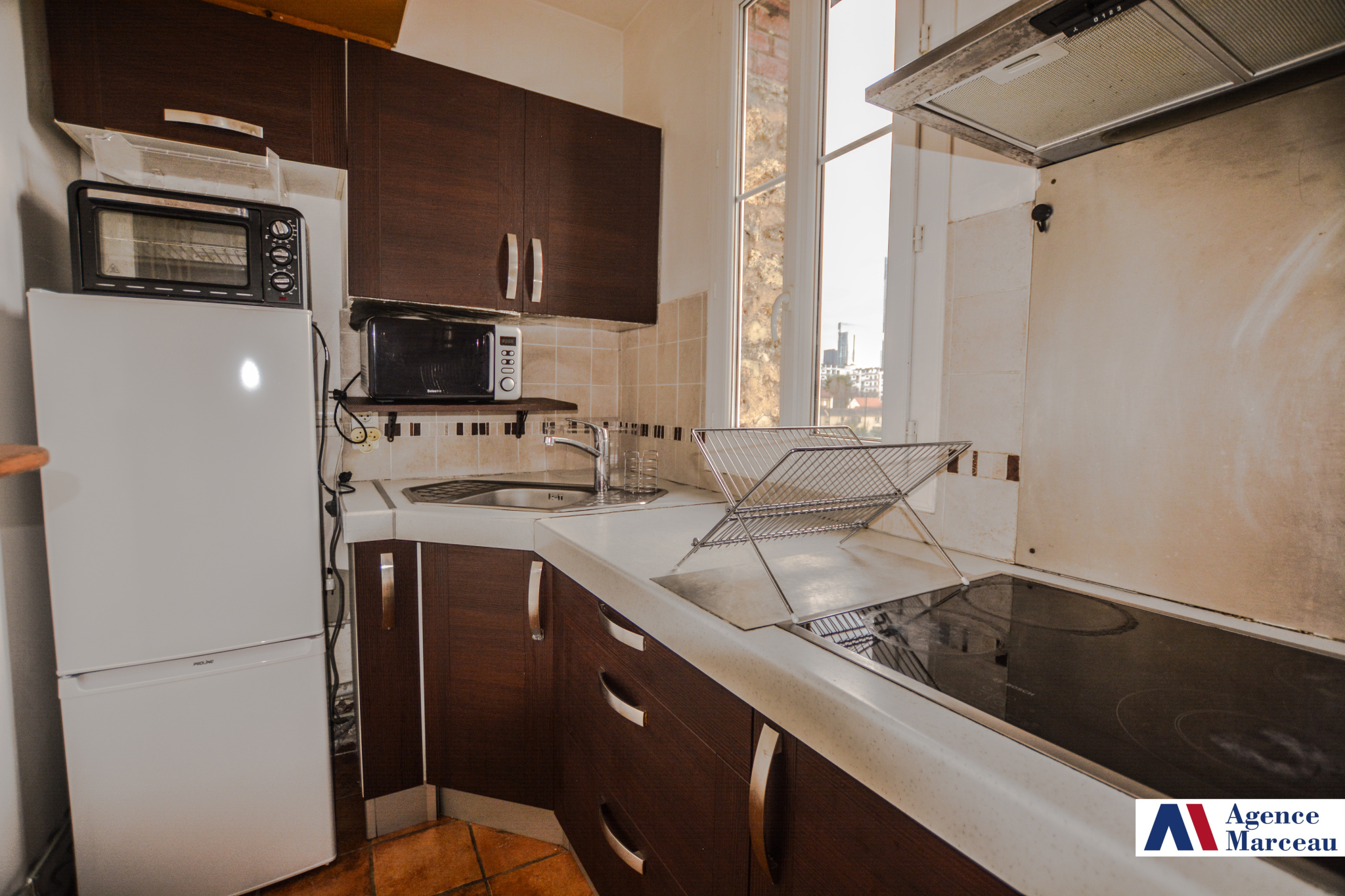 Courbevoie - Marceau. A proximité des transports et au 3ème étage sans ascenseur d'un immeuble ancien 2 pièces traversant de 33,57m², offrant entrée, séjour, cuisine ouverte équipée, une chambre, une salle de douches/buanderie, wc séparés. Une cave en sous-sol. Proche toute commodité. Copropriété de 15 lots principaux . Charges annuelles: 1400 euros environ (eau froide incluse). Taxe foncière: 382 euros environ.