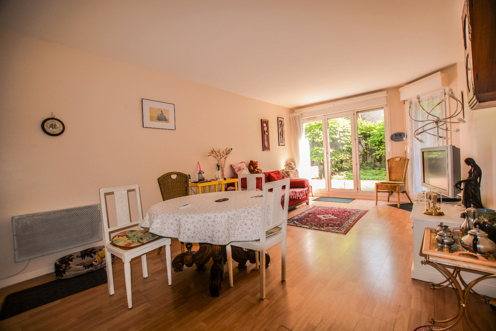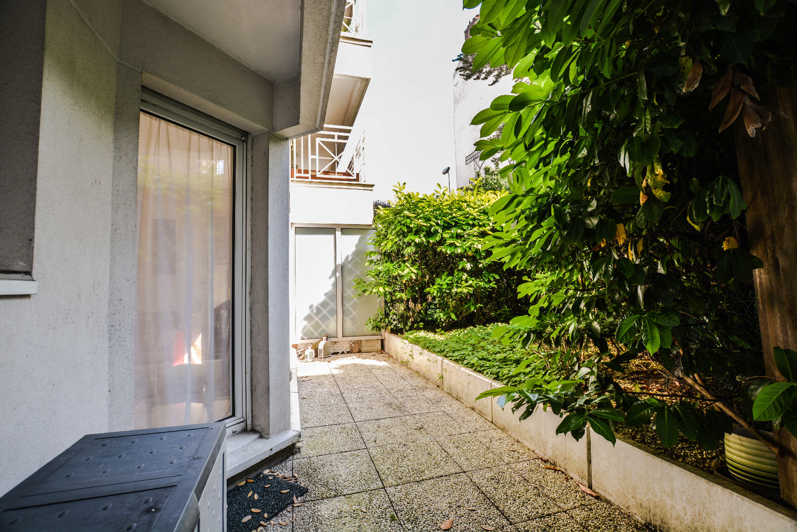 Courbevoie Rue de l'Alma. A proximité des transports et dans un immeuble récent, joli 2 pièces en rez-de-jardin de 48m², offrant entrée, vaste séjour de plain-pied avec terrasse et jardin (18m²), cuisine séparée aménagée (poss us), chambre spacieuse, penderies, SdB, wc séparés. Cave et parking en sous-sol. Très calme. Rare! Copropriété de 20 lots principaux . Quotepart du budget prévisionnel: 1504€.