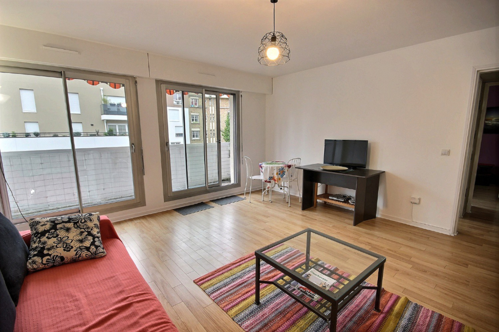 Courbevoie - Gare de Courbevoie. A proximité des transports (métro - Gare - T2- Bus) et au 4ème étage d'un immeuble semi-récent avec gardien, joli 2 pièces de 45,50m² offrant entrée avec penderie, séjour ensoleillé avec grand balcon, vue dégagée, cuisine séparée équipée, chambre spacieuse, salle de douches/buanderie, wc séparés. Possibilité d'acquérir en SUS un boxe double en sous-sol (25KE). Proche toute commodité. Très calme. Coup de coeur. Charges annuelles: 2224 euros (chauffage collectif, eau et gardien inclus). Copropriété de 75 lots principaux. Travaux d'étanchéité effectués.
