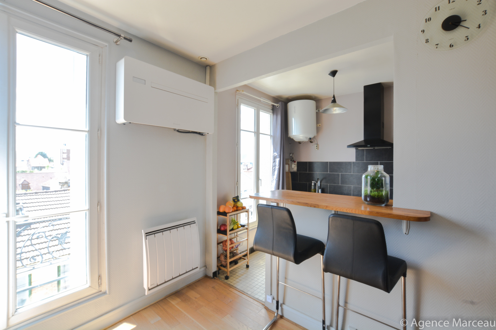 Au 3ème et dernier étage d'un immeuble ancien, venez découvrir ce petit deux pièces bien agencé et traversant. Il offre un séjour exposé Ouest avec sa superbe vue dégagée sur la Défense, une cuisine ouverte et aménagée, une chambre au calme exposée Est et une salle de douches avec WC. Située dans la zone pavillonnaire du centre de Courbevoie vous serez à 7 min à pied de la gare par l’accès Jean Pierre Timbaud. Vue très dégagée. Secteur calme. Dernier étage traversant, déja isolé et climatisé. L’ensemble est en bon état général. Une cave en sous-sol complète le bien. Copropriété de 8 lots principaux. Charges courantes 120€/mois. Climatiseur monobloc réversible installé avec l’accord de la copropriété. Honoraires inclus à la charge du vendeur. Annonce présentée par Christophe GUEGUEN, agent commercial pour le compte de l'Agence Marceau Immobilier et enregistré sous le numéro RSAC : 2979089100020.