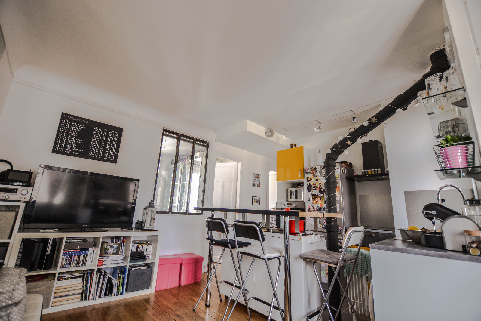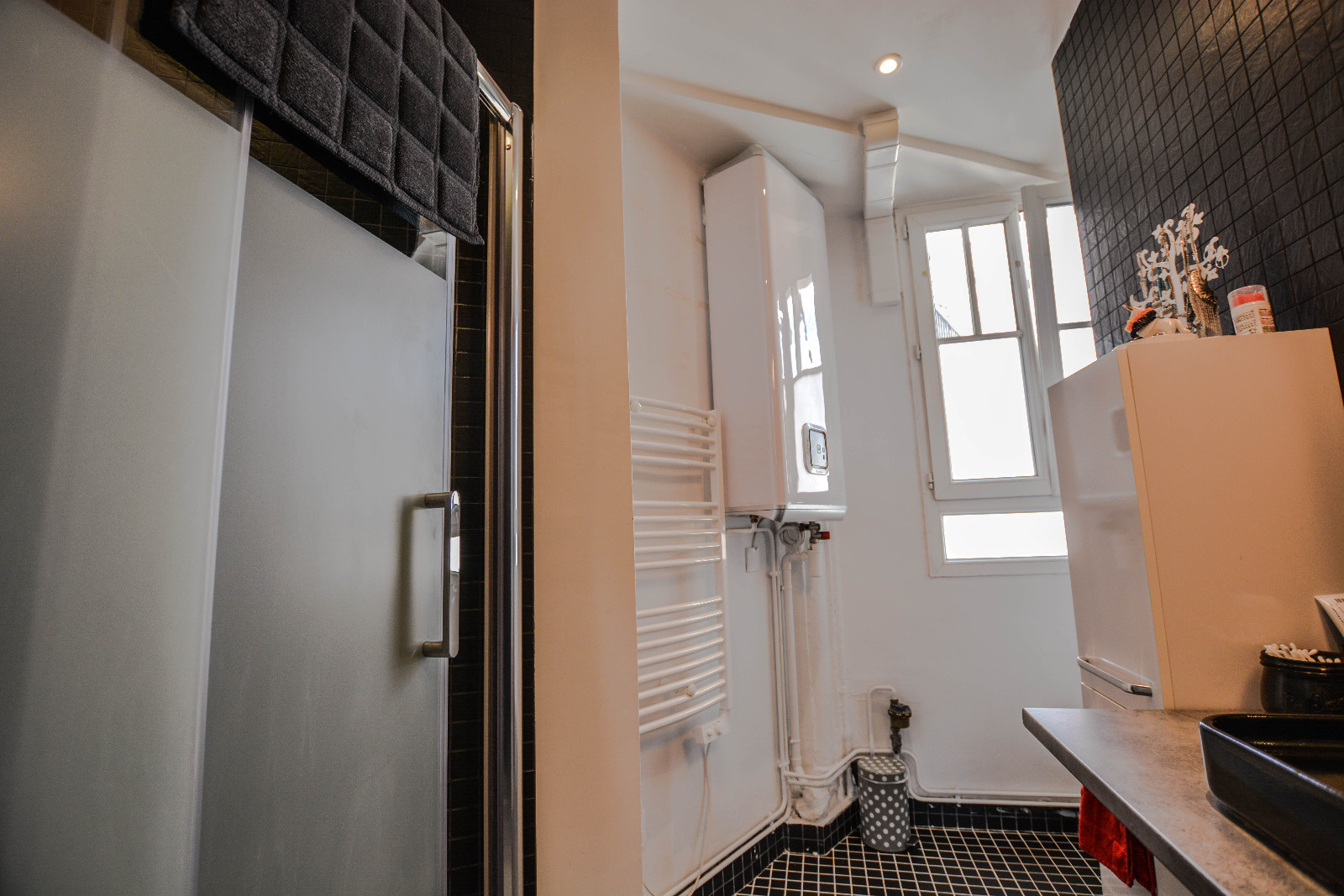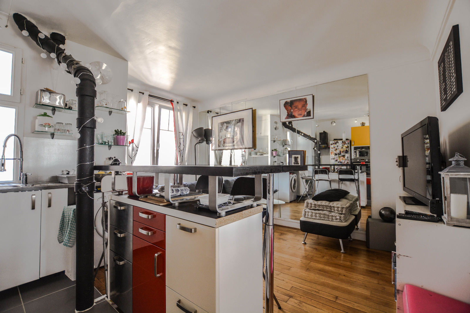 Courbevoie - Rue de Colombes. A proximité des commerces et à l'avant-dernier étage (6ème avec ascenseur) d'un immeuble ancien, Coup de coeur pour ce joli 3 pièces traversant, en parfait état, offrant entrée, séjour, cuisine US équipée , salle de douches avec wc, 2 chambres, rangements.Une cave et un parking en sous-sol complètent l’ensemble.Copropriété de 56lots principaux. Charges annuelles: 1600euro; environ (chauffage collectif et eau froide inclus). Ballon d’eau chaude.Taxe foncière : 380euros.