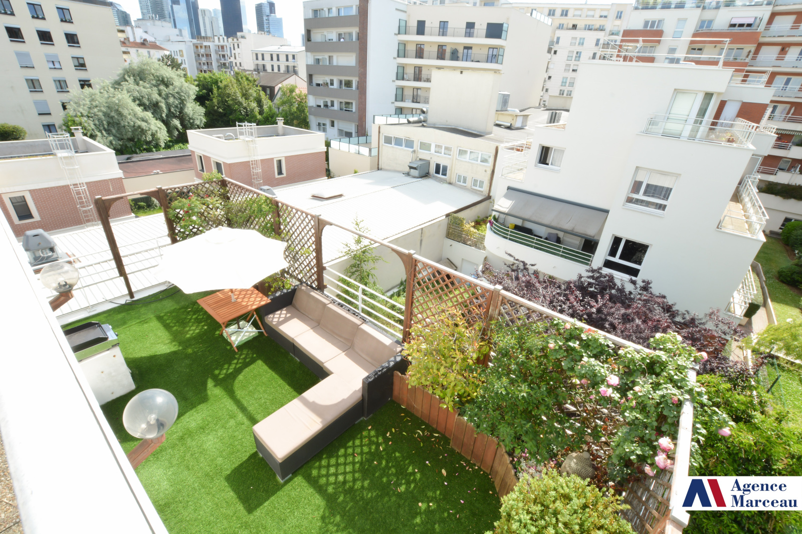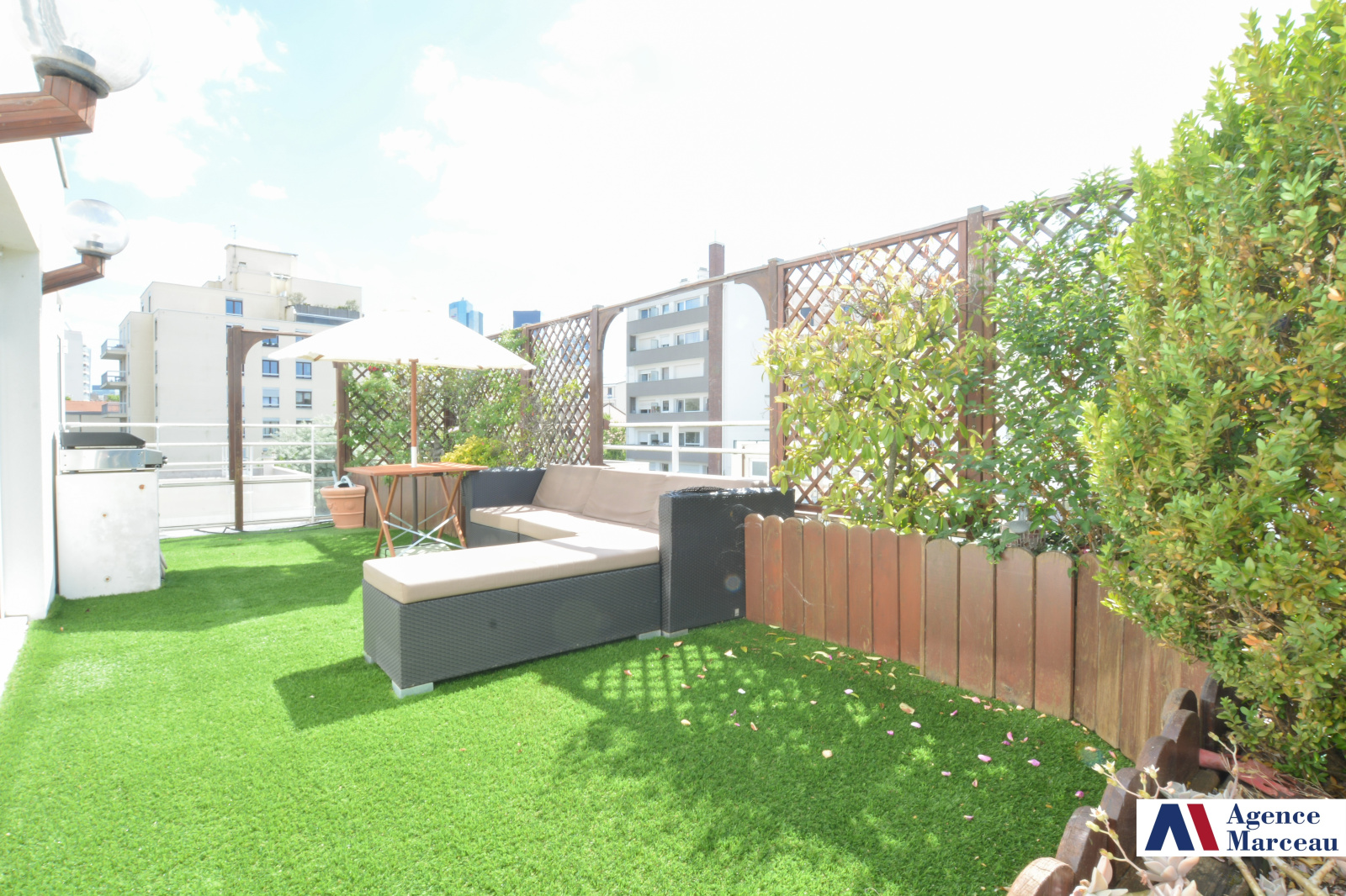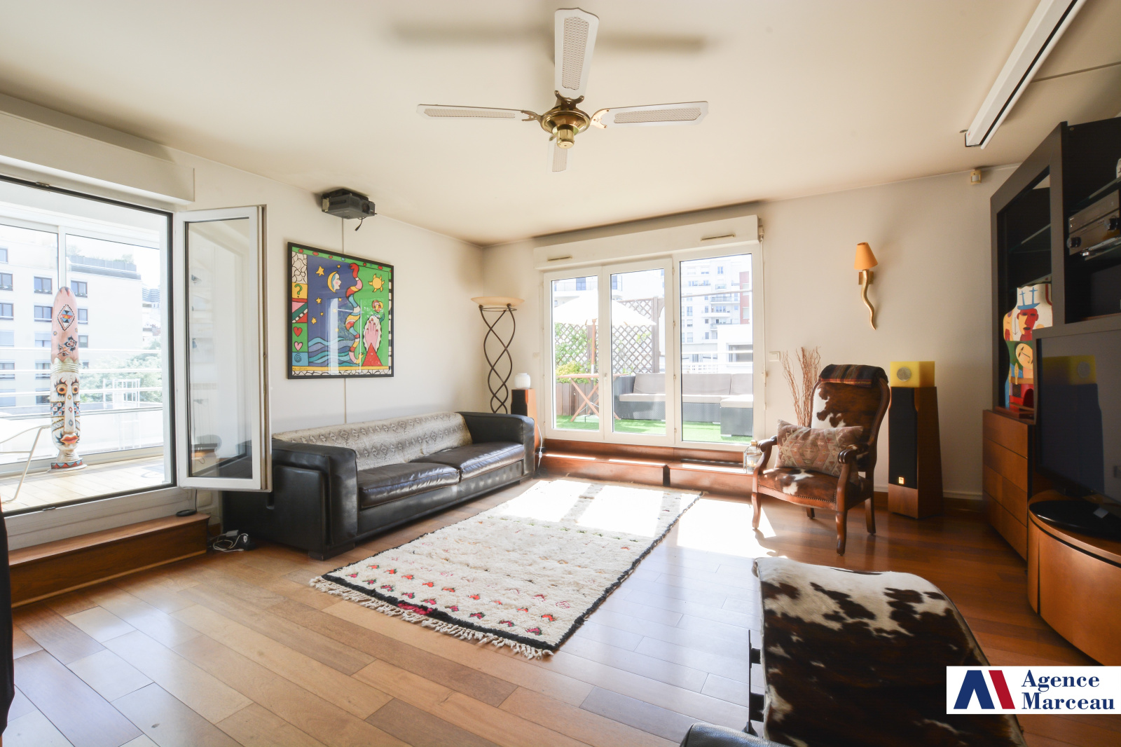 d’un grand séjour ouvrant sur une agréable terrasse de 23 m², exposée sud et ouest,