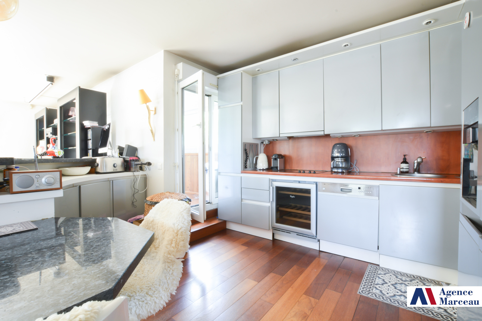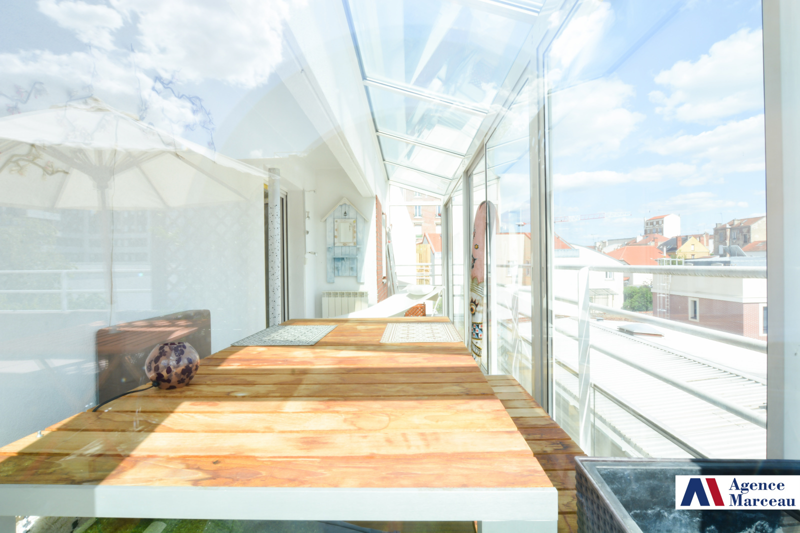 Ce grand duplex de 89 m² loi Carrez (et 115 m² de surface utile avec les vérandas) est situé au dernier étage d’un petit immeuble de 4 étages. Il est baigné de lumière grâce à sa triple exposition.