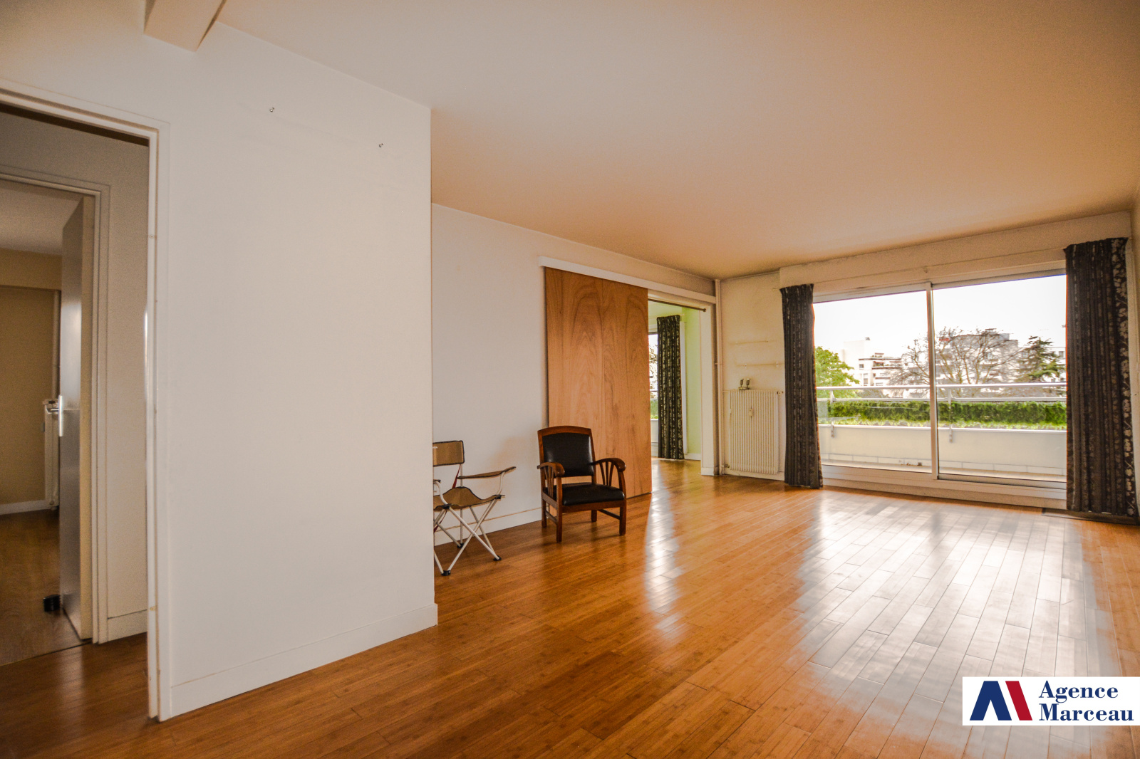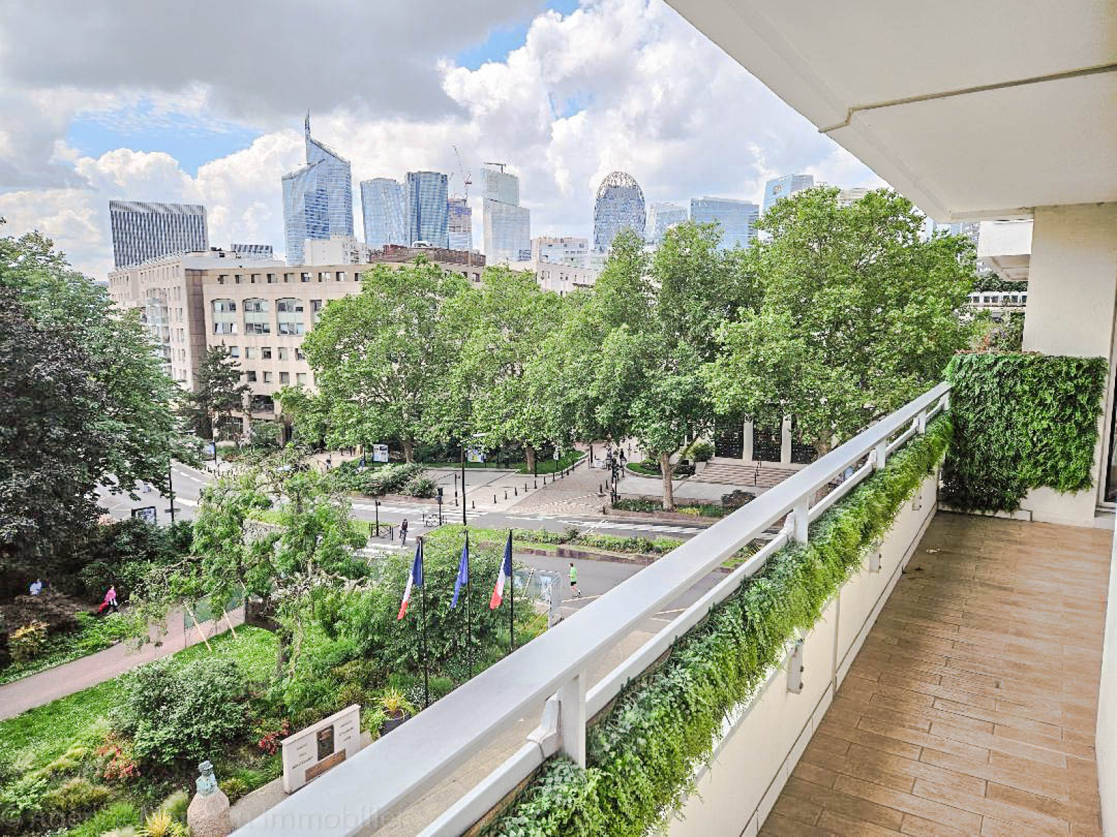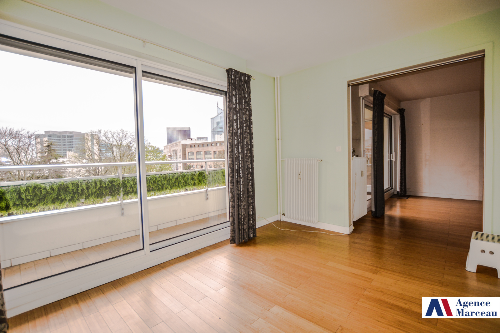 Exclusivité Agence Marceau- AMEPI. Courbevoie- Place Herold. A proximité du Parc de l'hotel de ville et au premier étage surélevé (équivalent d'un 4ème étage) d'un immeuble semi-récent avec gardien, joli 5 pièces traversant offrant entrée avec penderie, vaste séjour ensoleillé avec BALCON-TERRASSE donnant sur le PARC, VUE DEGAGÉE SANS VIS A VIS, grande cuisine séparée équipée, buanderie, 4 chambres spacieuses avec penderie, un 2ème balcon, 2 salles de douches avec wc, wc séparés. En sous-sol, une cave et un parking complètent le bien. (poss d'un parking supplémentaire en option). Proche écoles et commerces. Copropriété de 241 lots principaux. Charges annuelles : 5103 euros (gardien, chauffage et eau chaude collective inclus). Taxe foncière: 1156 euros.Pas de procédure en cours citée à l'article L. 721-1 du code de la construction et de l'habitation.Les informations sur les risques auxquels ce bien est exposé sont disponibles sur le site www.georisques.gouv.fr