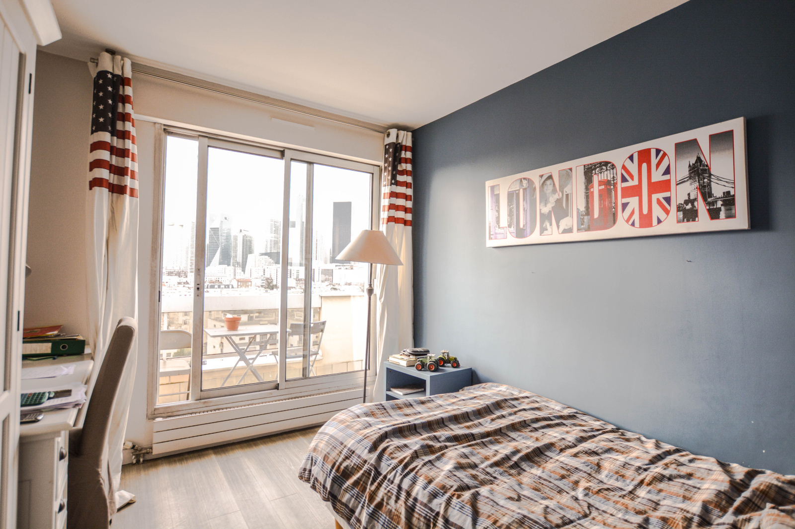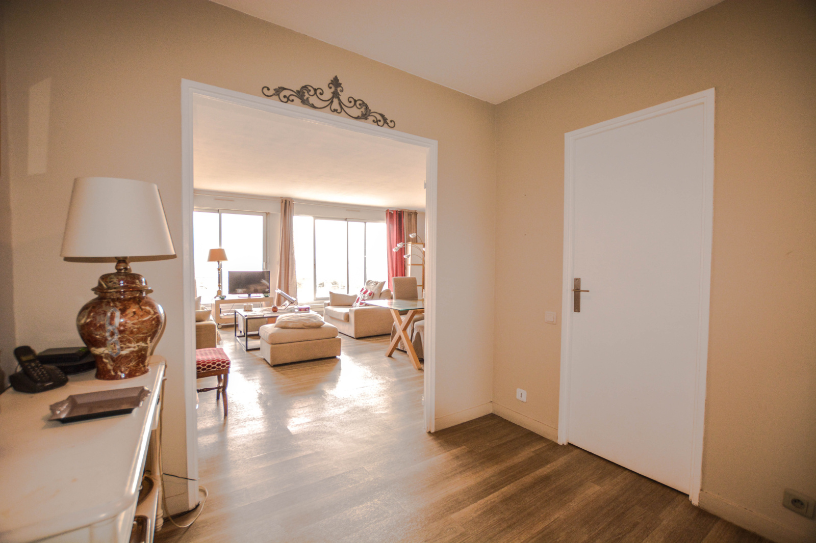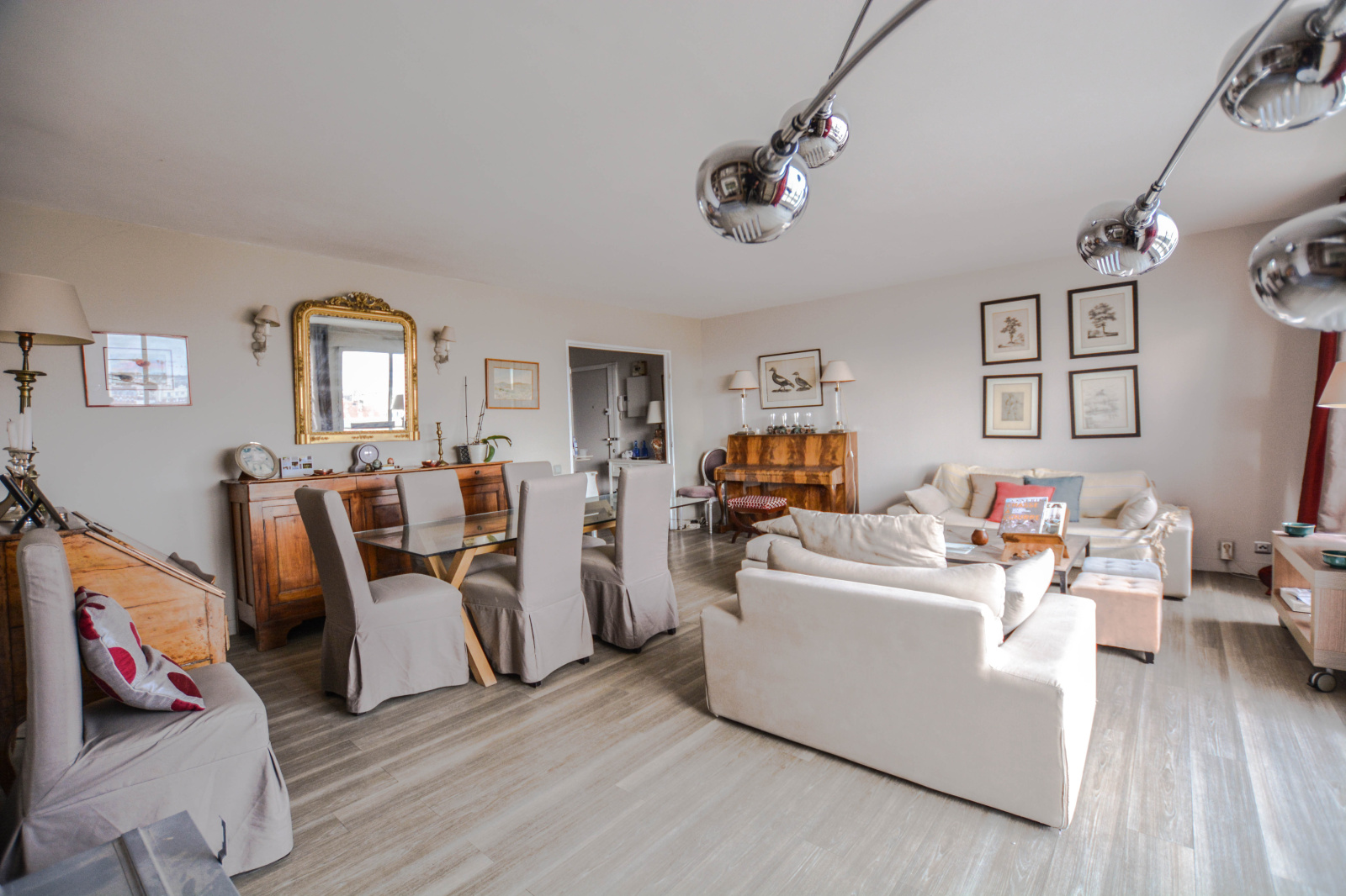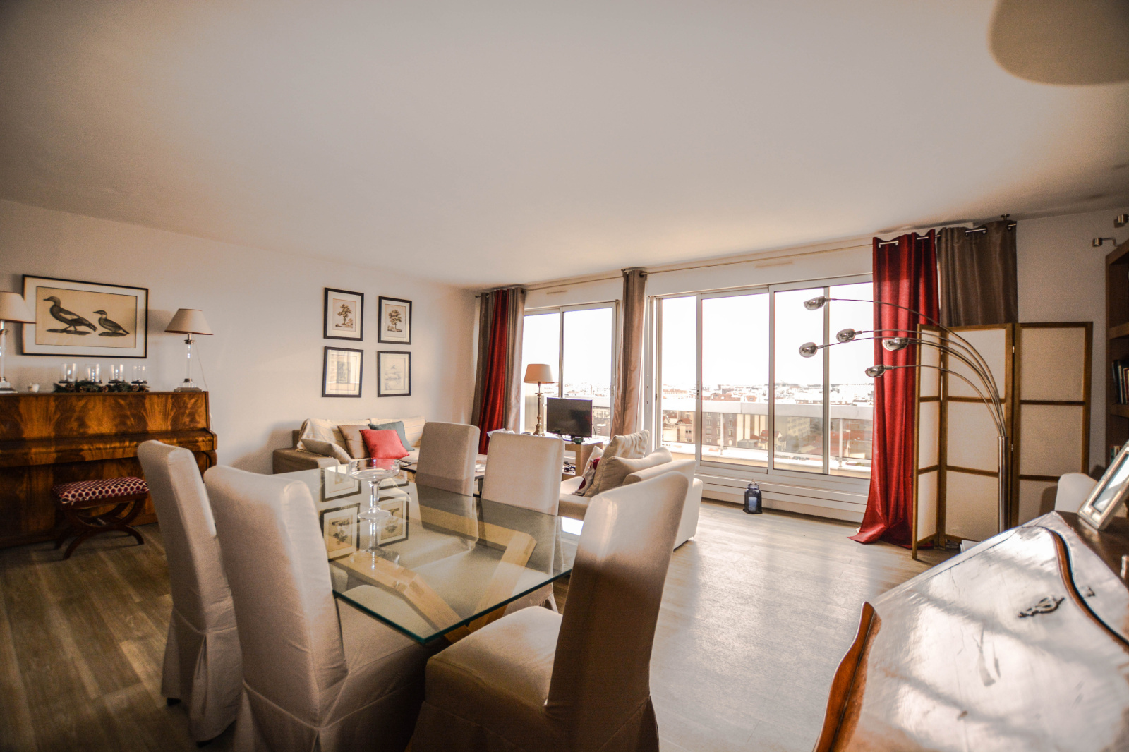 Exclusivité Agence Marceau. Courbevoie Marceau. A proximité des transports (Gare de Corbevoie-T2) et au dernier étage d'un bel immeuble semi-récent ravalé, joli appartement de 5 pièces traversant de 110,66m², offrant entrée, vaste séjour lumineux avec grand balcon, vue dégagée sans vis à vis, cuisine séparée équipée, 4 chambres avec grand balcon dont une suite parentale avec sa salle de bains attenante, une salle de douches, wc séparés, placards, rangements. En sous-sol une cave et 2 parking complètent le bien. Proche commerces et écoles. Bien rare! Copropriété de 103 lots principaux. Charges annuelles : 4823€ environ (eau chaude et froide, chauffage collectif et gardien inclus). Taxe foncière : 1059 euros.