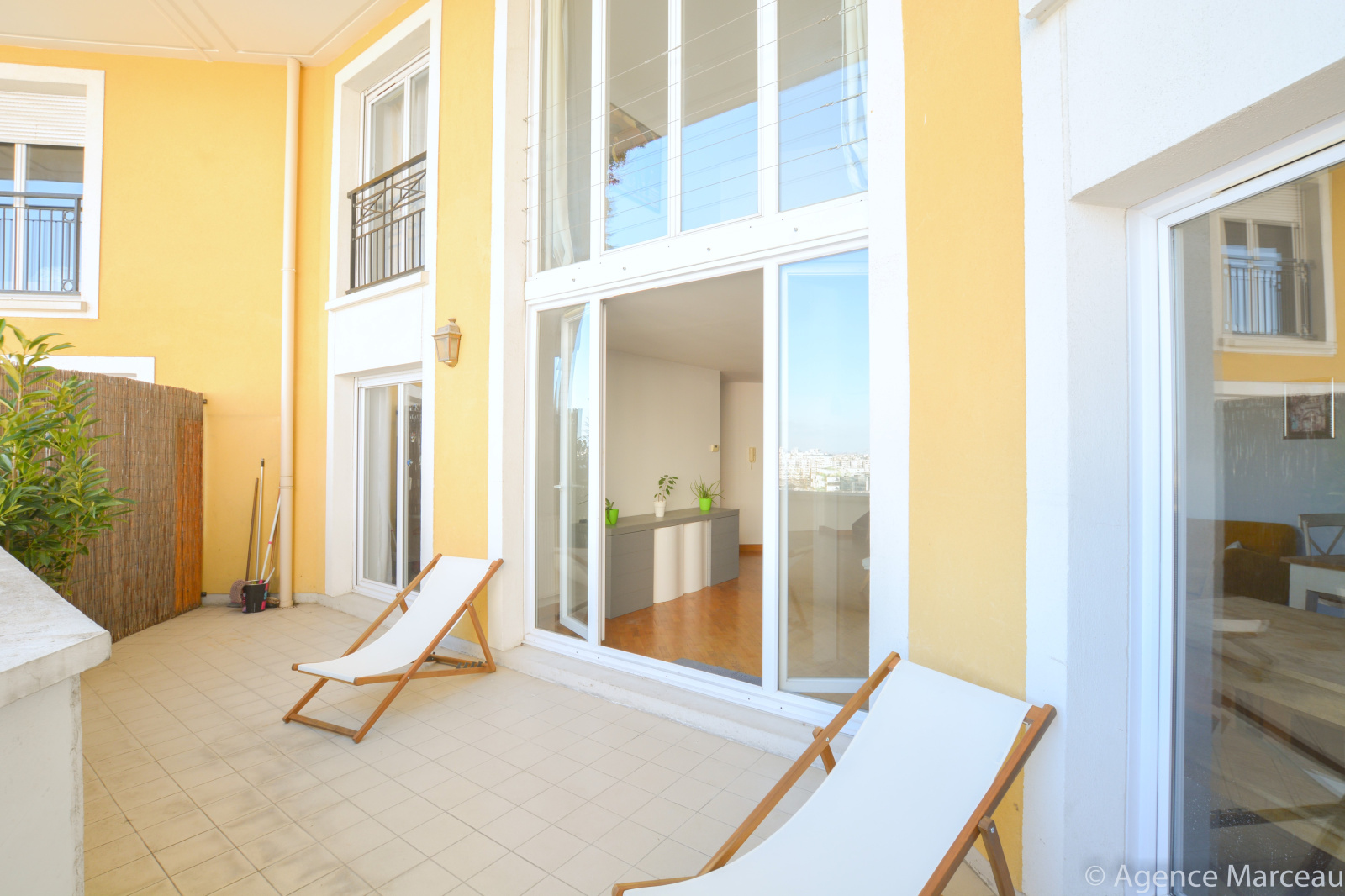 D'origine 119m², le séjour cathédrale a été utilisé pour faire la quatrième chambre et agrandir ainsi l'appartement de 18m². Cela permet également de très nombreuses possibilitées d'agencement ! Ce grand duplex vous offrira une belle pièce de vie de 53m² avec sa cuisine dînatoire et l'accés à la terrasse de 16m². Dans le prolongement une pièce de 13m² avec sa salle de douches peut servir de chambre, ou bien à agrandir le séjour, créer une buanderie ou pourquoi pas devenir un bel espace de télétravail. A vous de décider! A l’étage un palier dessert 3 chambres de respectivement 12m², 13m² et 20 m² , une salle de bain avec WC et une troisième pièce d’eau dans la cambre de 13m². Dans la belle résidence Apolonia face au cimetière, l’ensemble offre de l’espace, du calme, un confort de vie rare sur le secteur avec une vue dégagée jusqu'au Sacrée Cœur. Il ne vous reste plus qu'à imaginer comment vous utiliseriez tout cet espace. Au sous-sol un emplacement de parking et une cave complètent le tout.Charges annuelles :3800 € (chauffage collectif, eau froide et chaude et gardien inclus). Taxe foncière 1109 euros. Copropriété de 92 lots principaux. Procédure en cours. Honoraires à la charge l'acquéreur de 2.9% inclus dans le prix de vente. Annonce présentée par Christophe GUEGUEN, agent commercial pour le compte de l'Agence Marceau Immobilier et enregistré sous le numéro RSAC: 2979089100020