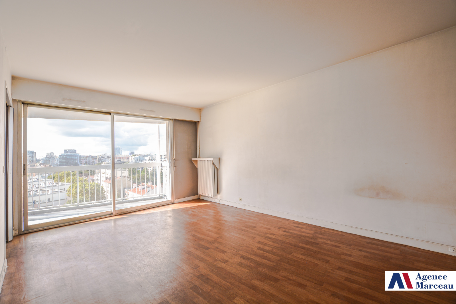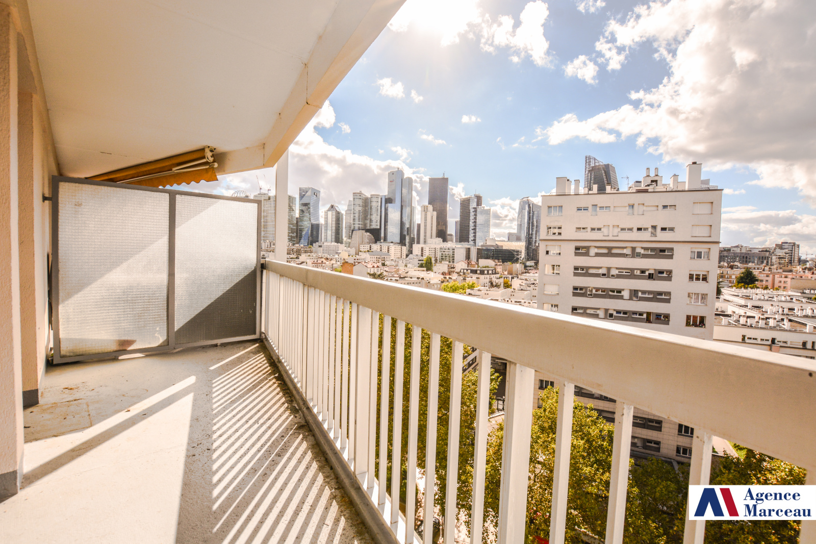 Exclusivité Agence Marceau - AMEPI.Gare de Courbevoie A proximité des transports (gare, métro, bus, RER A) et au 10ème étage avec ascenseur d'un immeuble semi-récent (1973), GRAND studio de 33m², à rafraîchir, offrant entrée avec placard, vaste pièce à vivre ENSOLEILLÉE avec GRAND BALCON, VUE DÉGAGÉE, cuisine ouverte aménagée, salle de bains, wc séparés. Gardien. Une cave en sous-sol complète le bien. Possibilité d'acquérir en option un parking en sous-sol (15KE EN SUS). Proche toutes commodités. Charges annuelles: 1562 euros (chauffage collectif, eau chaude et gardien inclus). Copropriété de 101 lots principaux. Ideal investisseur ou premier achat!