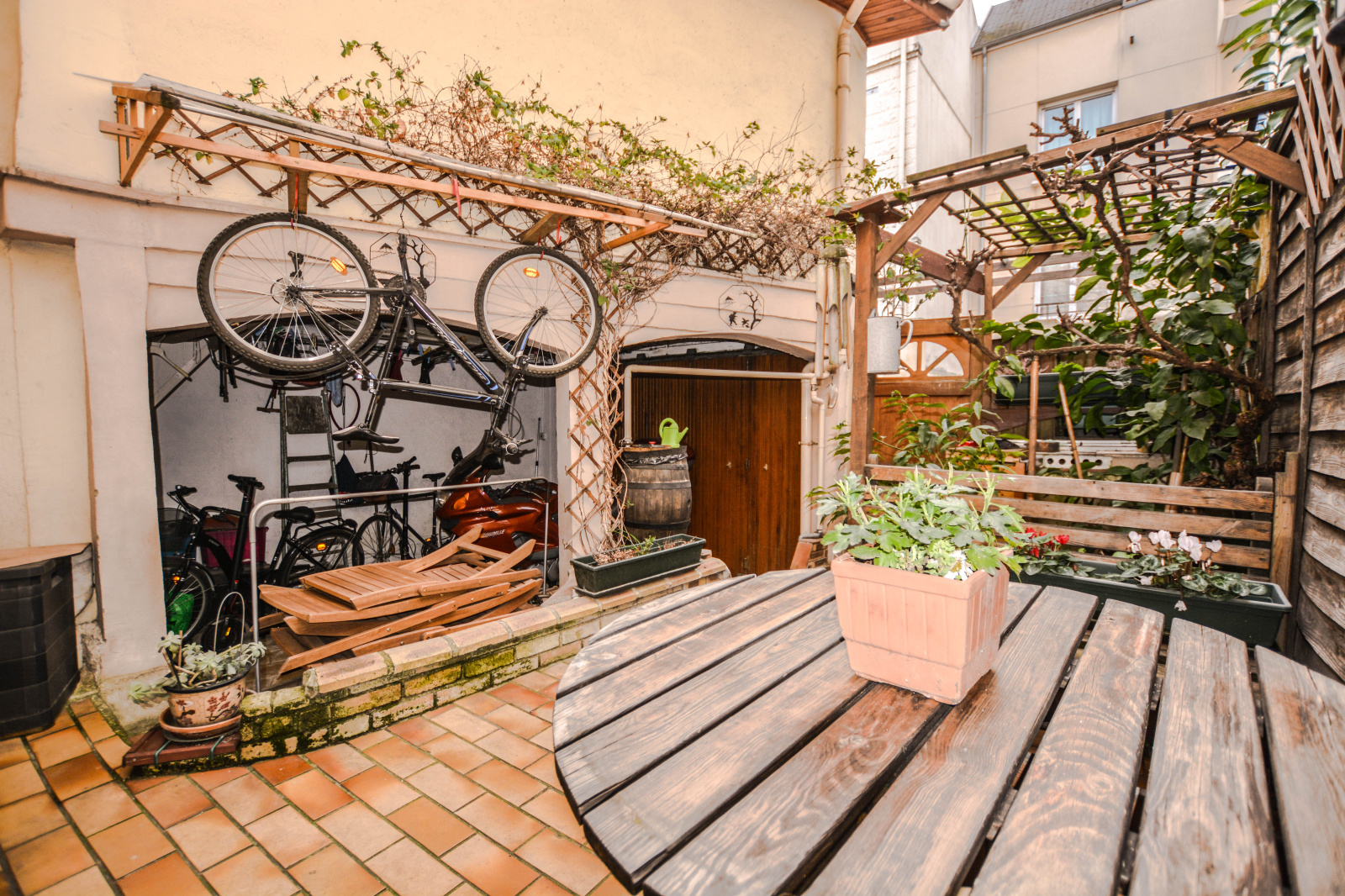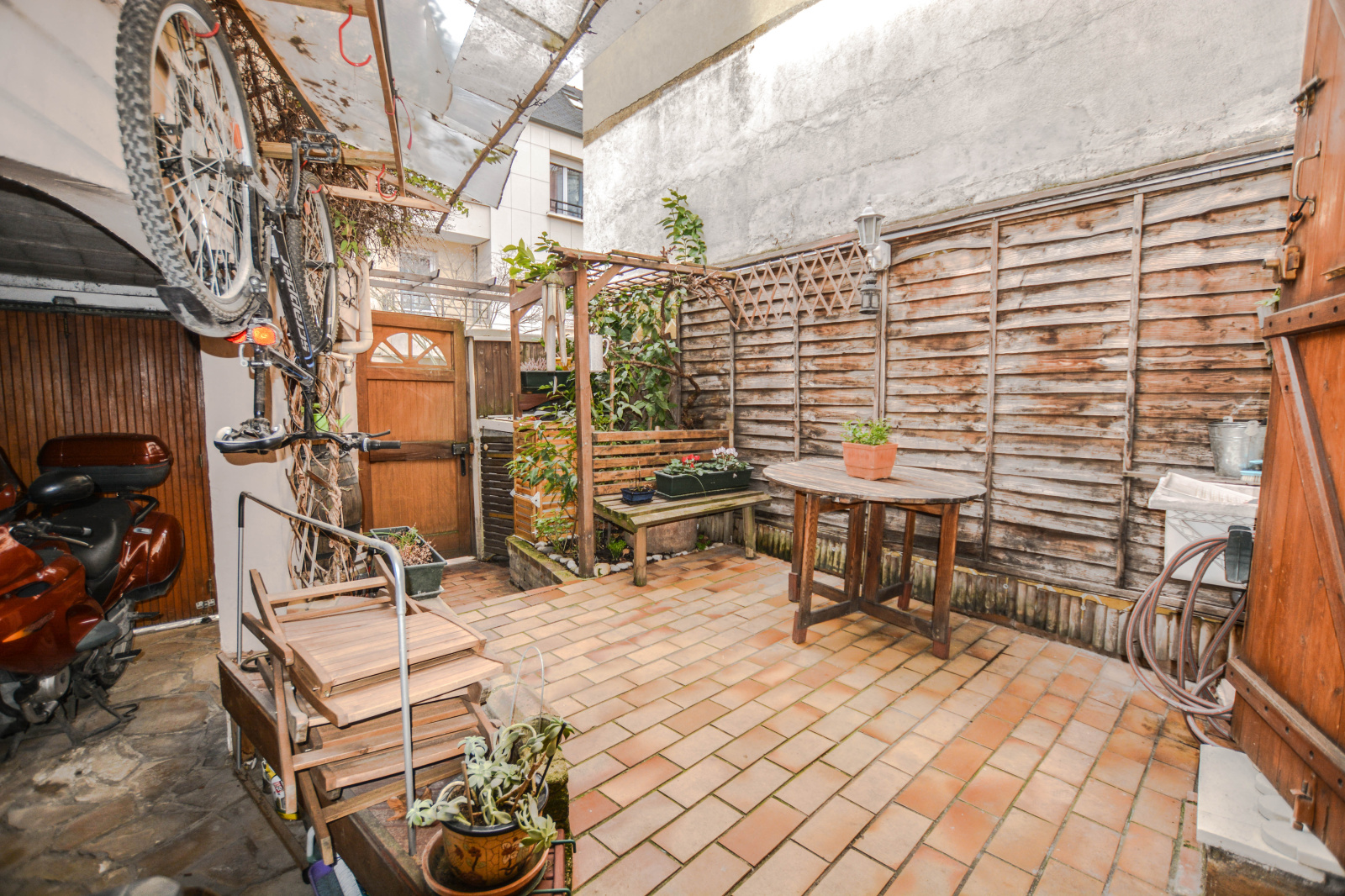 La Garenne Colombes proche Courbevoie. Sur une parcelle de 80m² environ, maison de ville ancienne (1900) R+1 de 79,77m² (85,91m2 de surface au sol), à rafraîchir, offrant au RDC surélevé: une entrée, un wc séparés d'invité, un séjour, une salle à manger, une cuisine séparée équipée donnant de plain-pied sur une terrasse ensoleillée. A l'étage: 2 chambres spacieuses, penderies, salle de bains avec wc, une extension composée d'une chambre avec mezzanine et point d'eau. Grenier. Un garage (pour une voiture citadine). Sous-sol total (atelier, cave à vin). Potentiel d'agrandissement des combles existantes. A proximité des transports (T2, gare) et de toutes commodités. Bien non soumis au statut de la copropriété. Chauffage individuel au gaz. Taxe foncière : 751 euros